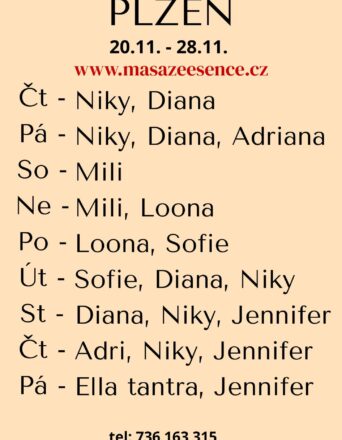 Pro více informací volejte: 736 163 315. Jsem tu pro tebe od úterý do čtvrtka(do 23h) 25.-27.11. Vítám vás v salonu MASÁŽE ESENCE.  MASÍRUJI CELÁ NAHÁ. Tím to vás zvu do světa uvolnění a jemné smyslnosti.  Pro labužníky je možné doplnit  B2B, zpětná masáž, sportovní masáž. Vzájemná úcta je v mé práci důležitá k navázání společného intimního vztahu.❤️ DOPORUČUJI: délku masáže 90 min.,JEDNÁ SE O EROTICKOU MASÁŽ S RUČNÍM ZAKONČENÍM.