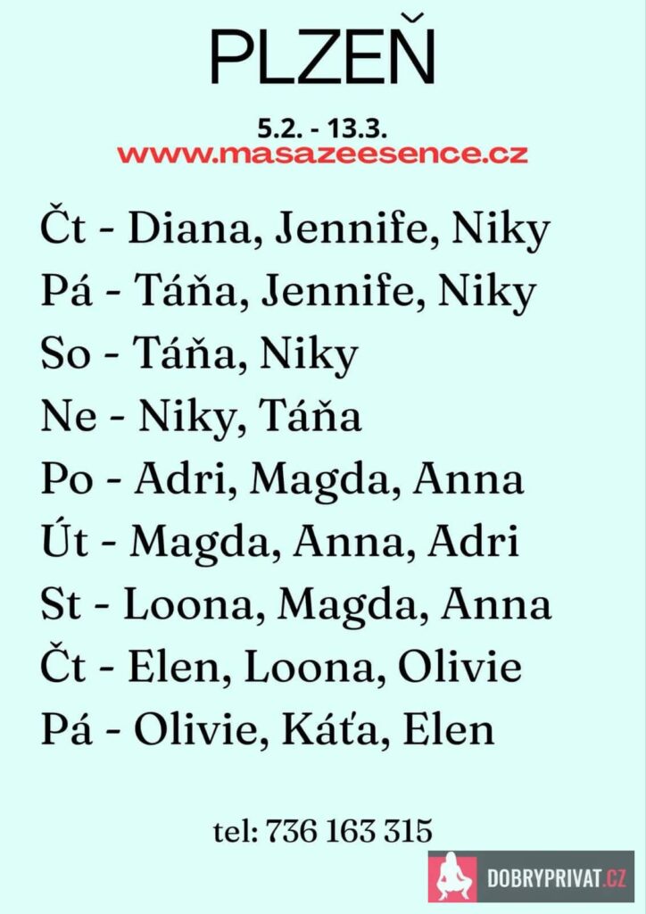 Vítám vás v salonu MASÁŽE ESENCE, www.masazeesence.cz. Jsem tu pro tebe od pondělí  do středy 9.-11.3. do 23h.  EROTICKÁ masáž. Jsem SMYSLNÁ dívka  co vás ráda potěší. Jedná se o masáž TĚLO NA TĚLO. Je to velice hravá a intimní masáž, do které zapojím nejen své ruce, ale i stehna, zadeček a prsa. Extra: pozice 69, koupací rituál, lávové  kameny a další. Pro více informací volejte: 736163315. MASÍRUJI CELÁ NAHÁ.   DOPORUČUJI: délku masáže 60 min. a z důvodu hlubšího prožitku  90 min. www.masazeesence.cz